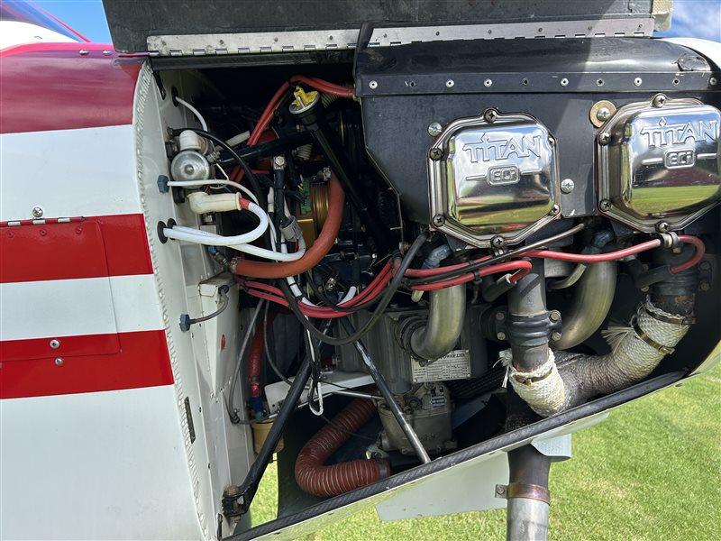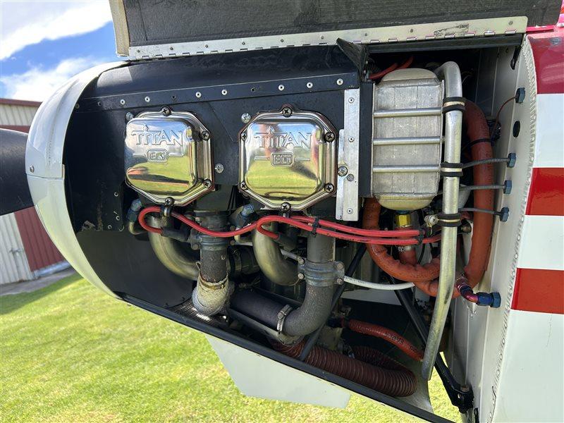 Aerosport O-375 (carbureted), 195 HP, 740 hours since new, low compression 8.5:1 (mogas capable), titanium sump and flywheel, lightweight alternator, Earthex battery, Sutton exhaust, 1 magneto and 1 Emag electronic ignition