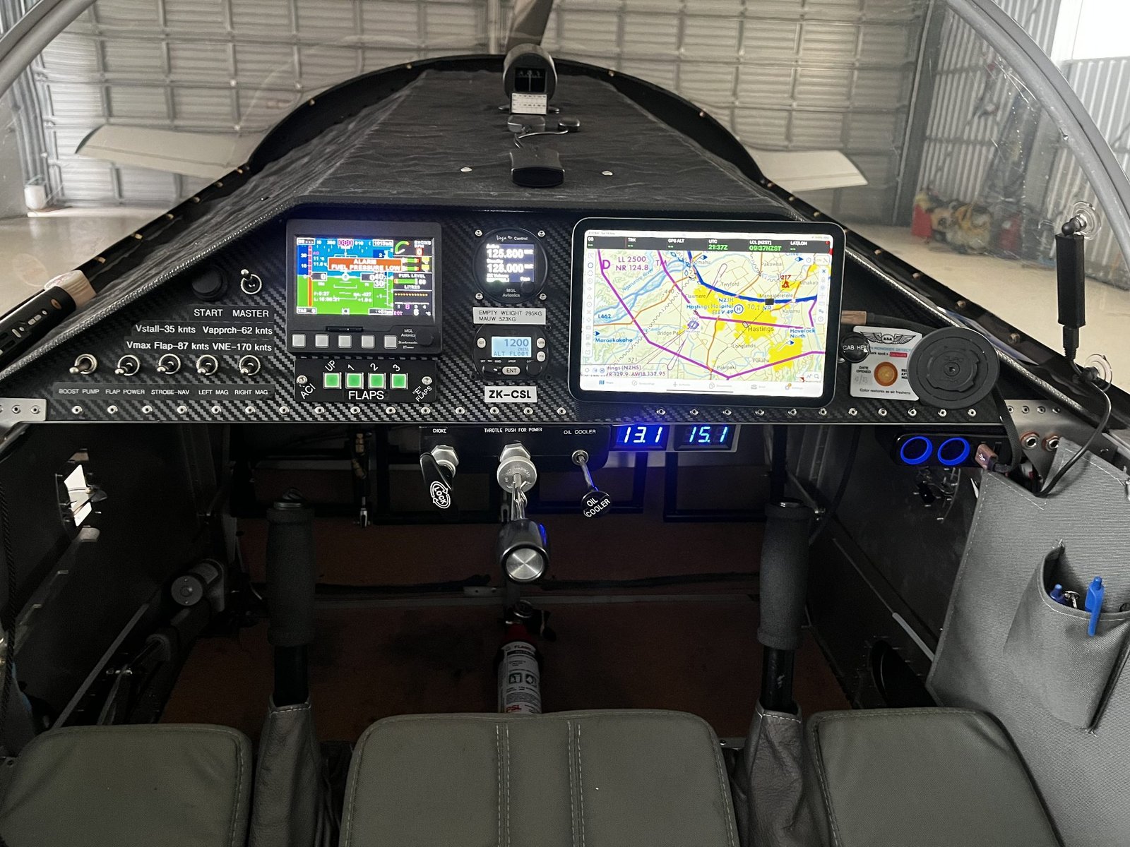 The panel is equipped with ADS-B In and Out capability and includes an iPad Mini for flight navigation and planning.